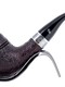 Using the finest briar available and created by Peterson's most experienced artisans, this beautifully sandblasted pipe is fitted with a black vulcanite stem and the famous "P" lip mouthpiece. A wide hallmarked sterling silver band, stamped with the Sherlock Holmes logo completes the look.